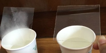 of small droplets on a surface which resemble fog. Anti-fog coatings are used on transparent glass or plastic surfaces used in optical